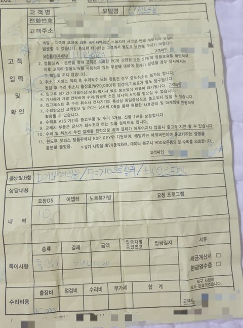 포맷하는 중에 70프로 80프로까지 되다가 포맷이 안된다고 하시고 그래서 로우?로 포맷을 하기 위해 시간이 조금 걸린다고 하셨고 다음날 아침에 연락을 주시겠다고 하신 상태에서 전화를 마쳤고 다음날 전화가 왔지만 포맷이 진행하던 중에 하드가 나갔다고 하셨습니다 그래서 원래 제가 부탁드렸던 서류 백업과 사진 백업이 불가능하고 그걸 백업하고 위도우를 깔기 위해서는 ssd를 새로 교체하는 방법밖에 없다는 이야기를 들었습니다 그리고 그 교체 비용이 15만 원이라더군요