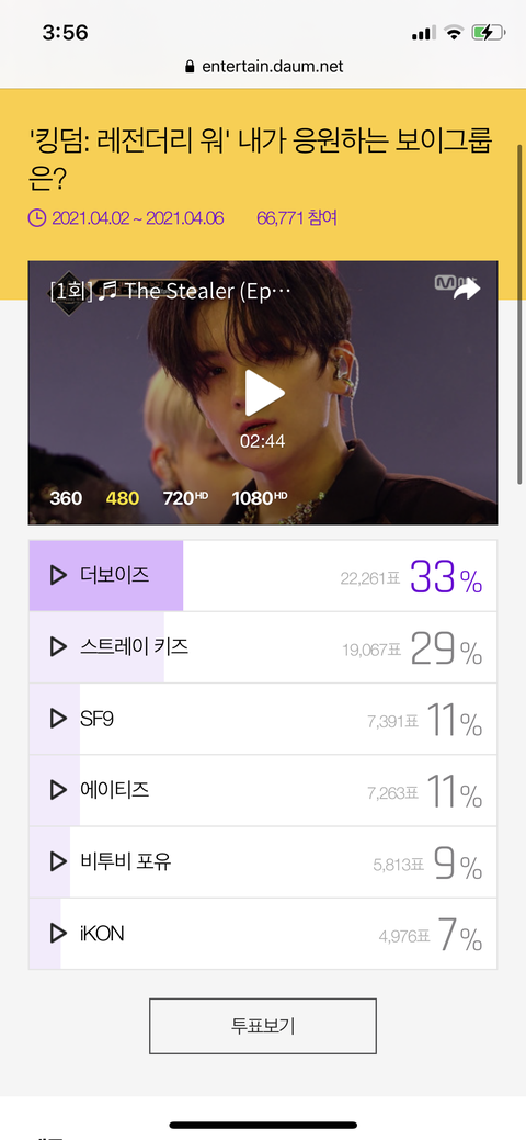 이게 킹덤 순위에 반영되거나 그런건 아닌데 포털사이트 메인에 걸린다니까 대중들한테 얼굴 한번씩 보여주는 의미에서 1등하면 좋을듯!! 다 와서 1등 뺏기는건 너무 억울하니까 끝까지 열심히 해보자!