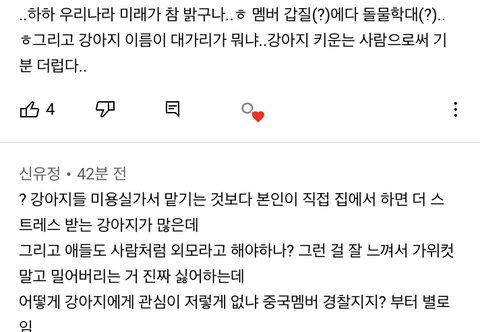 아오 진짜.... 방구석 강형욱들 납셨다... 댓글로 한마디 하고 싶지만 조회수 올라 가니깐 참는다