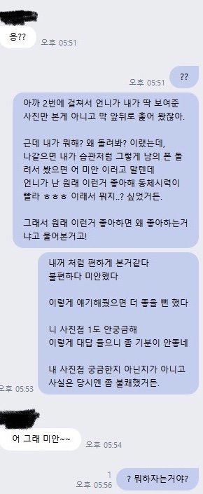 도대체 남의 폰 사진 뒤져본거랑 동체시력이랑 무슨...?
