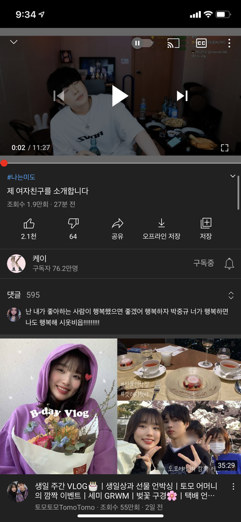 +)비제이 연애 생활 평소에 관심 없고 케이가 여자친구 있다고 밝힌 게 10년만에 처음이라 신기하다고 올린 건데