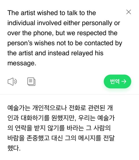 아티스트가 만나거나 전화로 얘기하고 싶었는데 다 거부해서 회사를 통해서 전달하는 방식으로 얘기했다는거