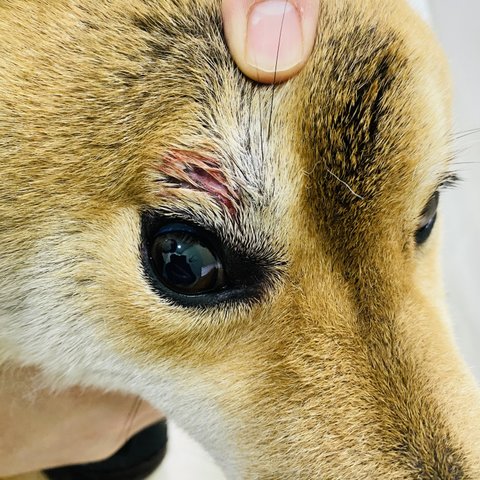 애견카페 샤워장에서 호두를 씻길때 눈이 찢겨짐을 발견. 응급처치 후 , 동물병원감.
