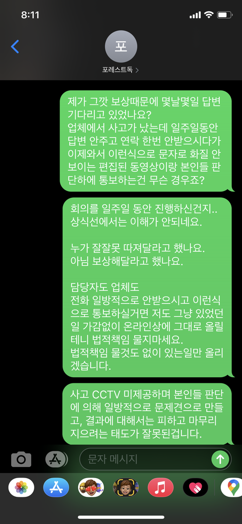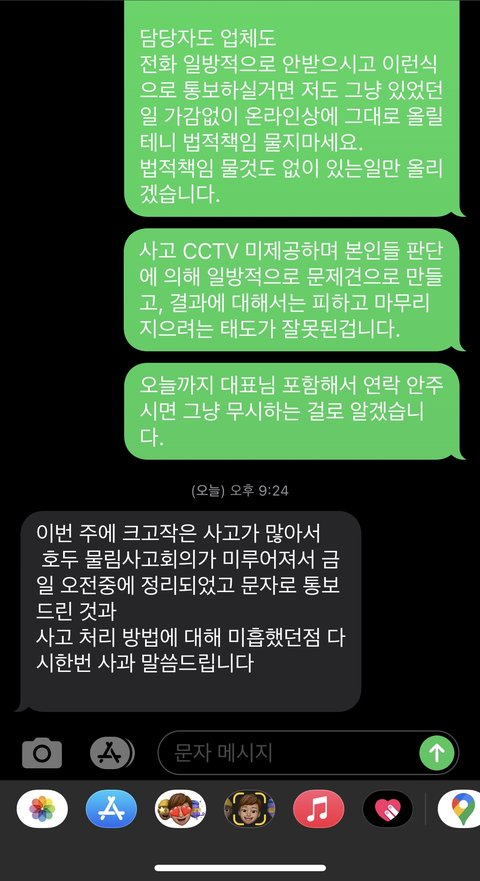 제가 인터넷에 올리겠다 답장을 보내자 전화가 왔고