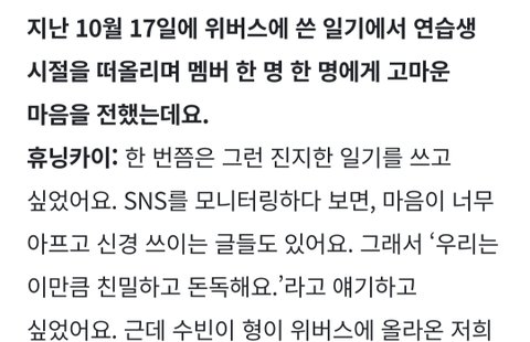 휴닝이가 인터뷰한거랑 일기쓴거 보고 좀 후회함 우리가 이러는것이 휴닝이를 힘들게하는거 아닌가 싶었어..