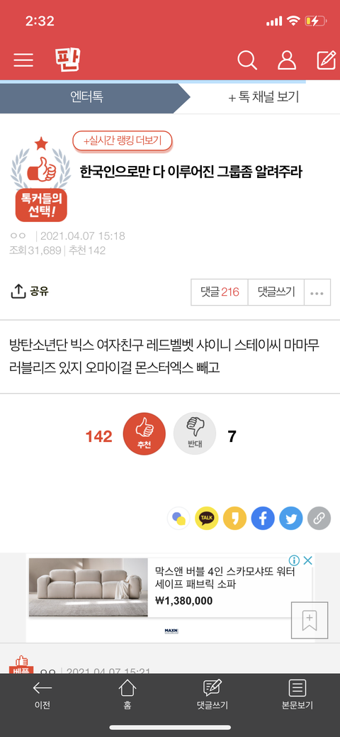 얘들아 댓글 좀 달자