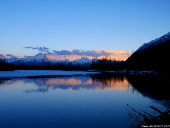 저녁노을이 지는 시간인지라 집으로 돌아오는데 , 앵커리지에서 오는