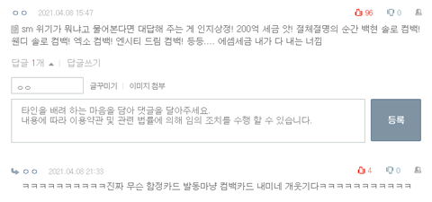 아 톡선 보다가 개처웃었네 스엠 히든카드 발동