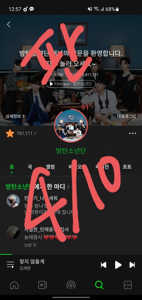 나 방탄팬 아닌데 멜론 91도 나오네 91도면 아닌거 인증 가능하지??