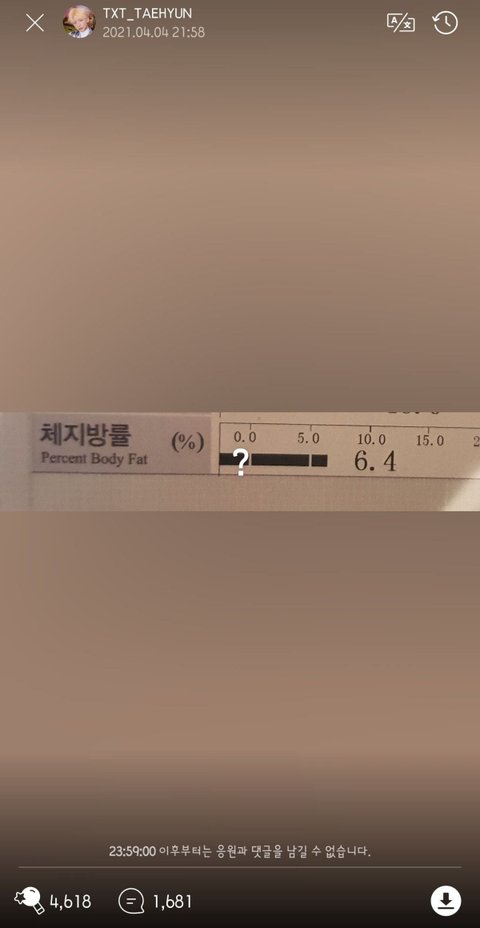 투바투 태현이 얼마전 공개한 체지방률