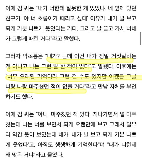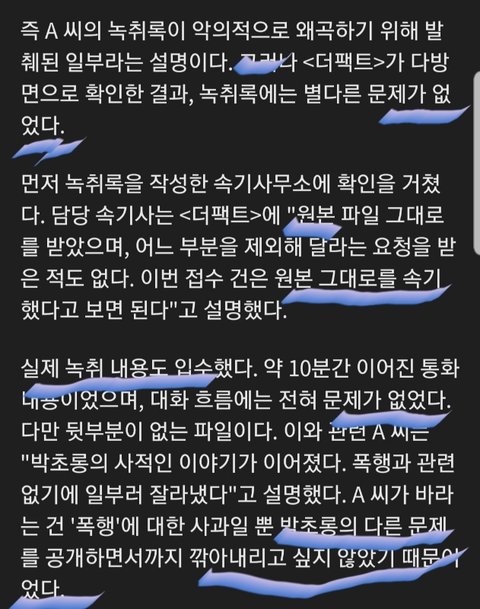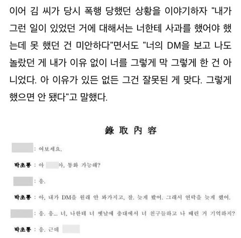 저번에 폭로자 녹취록에서 이부분 잇엇나....? 거기서는 박초울이 폭행 인정하는 것처럼 대답하더니 여기서 또 다름..
