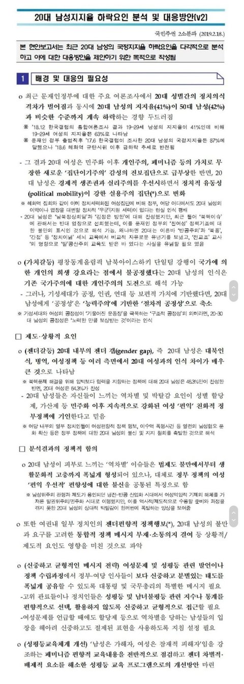 대놓고 20대 남자들은 세뇌교육에 실패했다.
