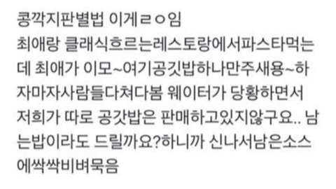 내가 눈치없이 공기밥 없는 레스토랑을 데려가서 그래 전부 내탓임.