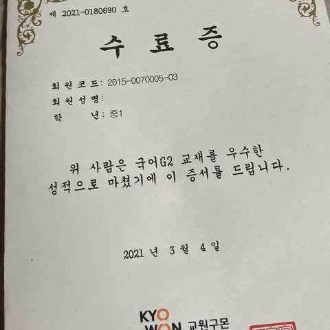 내 덩생 잼미닌데 구몬 수료증 ㅠㅠㅠㅋㄱㅋㄱㅋㄱㅋㄱㅋㄱㅋㄱㅋㅋㅋㅋㅋㅋㄱㅋㄱㅋㄱㅋㅋㅋ 보고 혼자 쪼갬