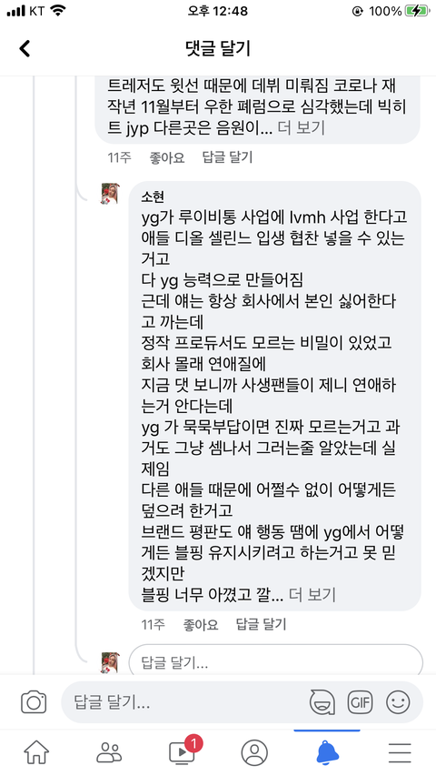 그리고 yg 사업 적자 났다며 까고 다님