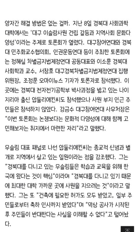 경북대 옆 에 이슬람 사원 짓겠다고함 ㅡㅡ