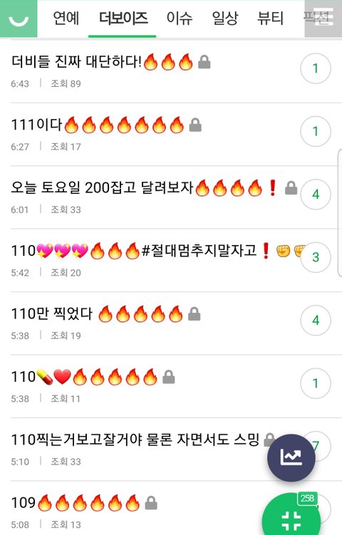 안녕~나 인티하는데 팬톡더비들 열스밍하고