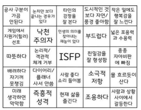 내 짝남이 isfp거든? 근데 오늘 뭐하냐고 먼저 선톡옴... 이거 쌍방 맞지? 연락 하나 달랑 와서 쌍방이냐고 묻는거 아님 어느정도 쌍방 티가 났긴 났는데 이걸로 썸 시작 맞지?
