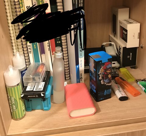 라이터에 저거 다 전자담배 액상임 진짜 독서실 사물함 옆칸이여서 거의ㅠ매일 보는데 여친한테 자랑하듯이 우리애기들 뭐 제일 소중하다 이런식으로 자랑함 그럼 또 그 여친은 우와 진짜 ? 이러고 여자들이 볼때 진짜 한심한데 쟤는 언제 알런지. 나이는 19살쯤 글고 좀.............잘난구석은 없어보임 냄새도 사물함 열면 시큰시큰 거리는 냄새 ㅜ
