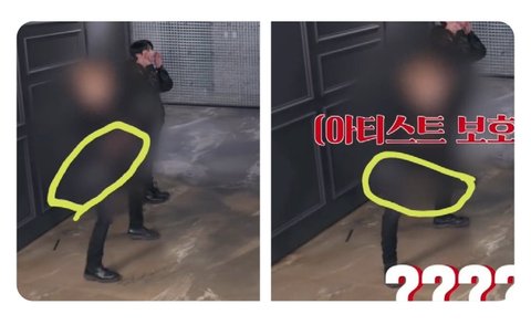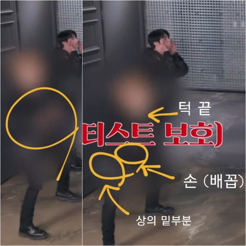 모자이크 해놔도 색 남아있어서 보임 아랫부분 흰색은 티 밑부분이고 팔이 그 언저리에 있는 걸 볼 수 있음 그리고 손 위치도 더 아래로 내려감 (가슴아래 윗배-배꼽으로 추정)