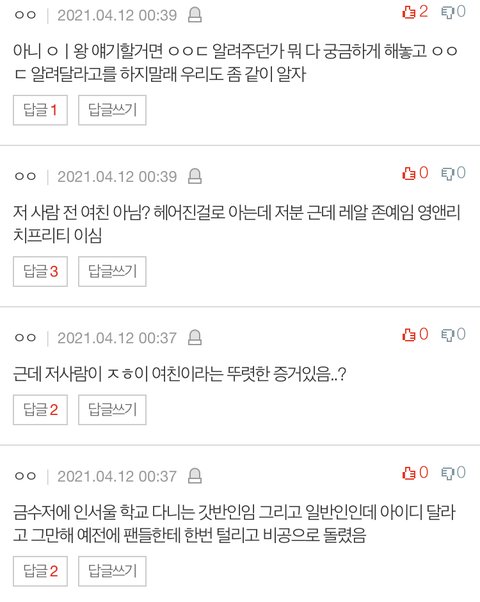 파생 미안 이따 글펑할게 솔직히 인기멤 여친을 누가 이렇게 찬양해주냐ㅋㅋㅋㅋㅋㅋㅋㅋㅋ 그냥 지가 지 사진올리고 댓글쓰는듯 갓반인갓반인 칭찬도 레파토리 ㅈㄴ똑같애