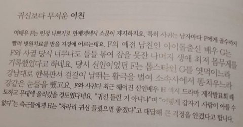 진심 나 다 누군지 알거든? 근데 남친들을 얼마나 들들 볶았으면 토하고 강남 한복판에서 활극을 벌이고 잠도 못자서 몸무게 빠지게 하고 이러냐? 진심 뭘 했길래..? 성격 기 쎈건 알겠는데 저정도로 사람 괴롭히는건 ㄹㅇ싸이코 인듯