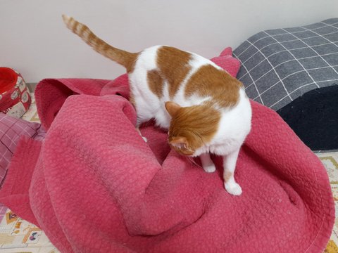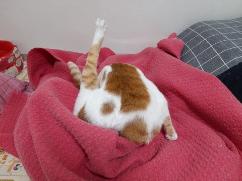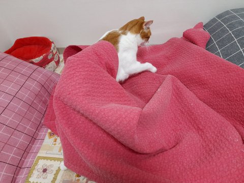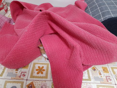 집사 아침 출근길에 이불속으로 들어가더니 얼굴만 살짝 내밀어보는 도칠이.