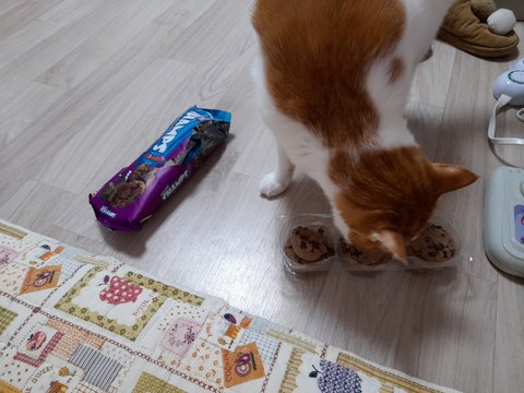 집사가 먹는 과자 냄새 맡아봄.