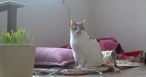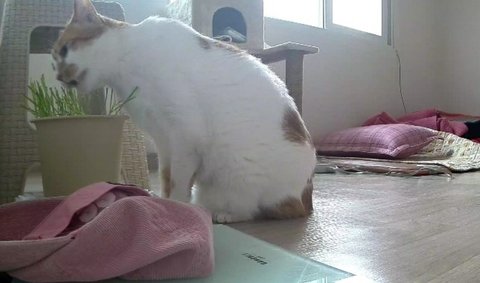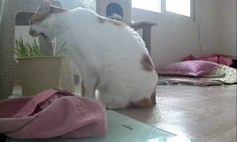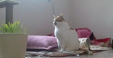 출근하는 집사에게 어떤 묘기를 보여줄까 고민하고 있음.