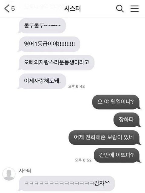 남주니 여동생이랑 문자한거봄?