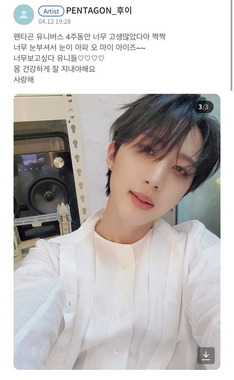 공카글이랑 유큐브 글, 한결같은 셀카 등등 올라왓는데 진짜 후이가 와줬어ㅠㅠㅠㅠㅠㅠ우리 진호때도 막 진호플 열심히 타고 있었는데 영상 올라와서 소름돋앗엇잖아ㅠㅠㅠ유니버스 펜타곤은 운명인가봐ㅠㅠ