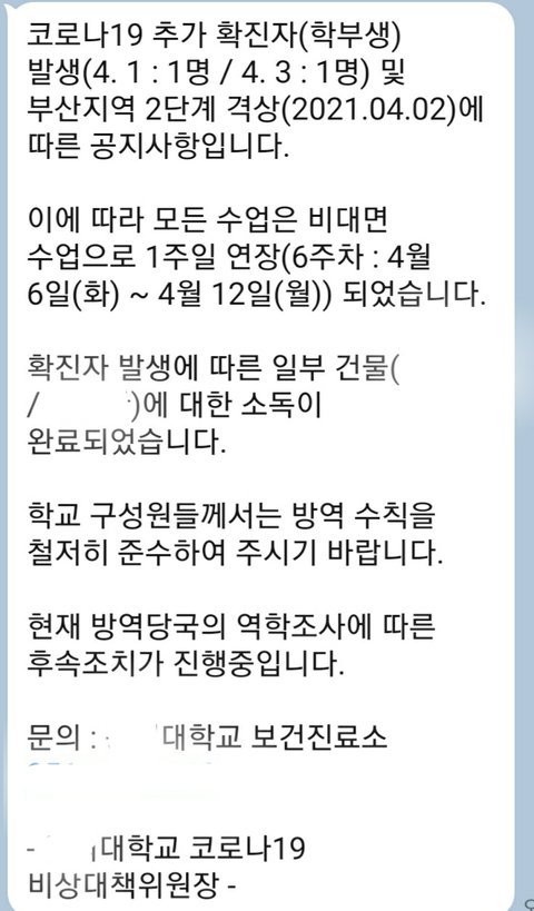 1.4월 1일에 학교에서 확진자 나와서 4월 5일까지 비대면으로 전환