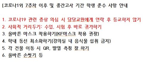 14.다른 질문에 대한 학교측 답변 -"7주 (*현재 6주차 까지 비대면*) 부터 학생들이 방역수칙 잘지키고 마스크 잘끼면 문제 없을것"
