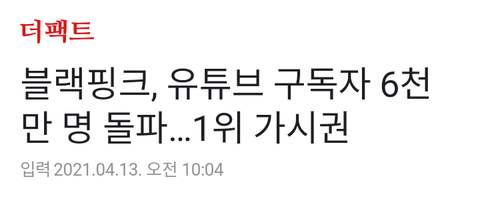 블핑 유툽구독자 6천만 돌파