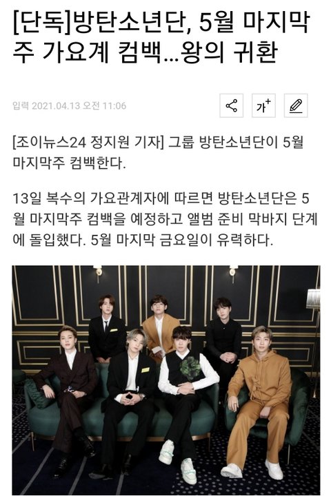 방탄 컴백 날짜 뜸 ㅎㄷㄷㄷ