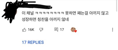 이딴 댓글 있는데 뭐가 좋은 채널이라는 거야. 잘하면 칭찬하고 못하면 까니까 좋은 채널이라고?