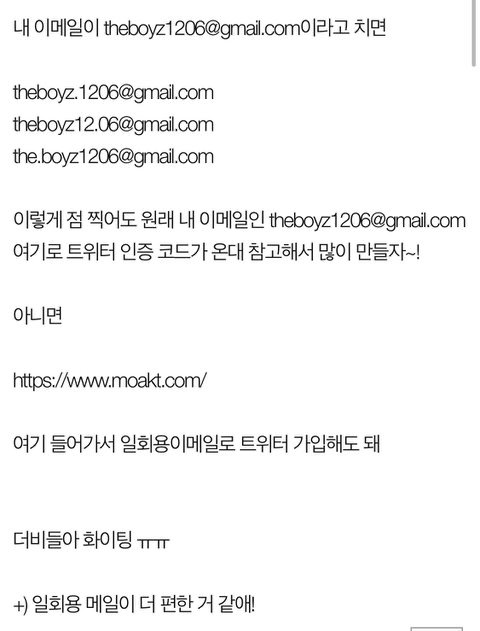 총공팀 트윗보니까 우리가 팔로우 증가 추이가 낮은편이래 ㅠㅠ 구글 계정 하나로 트위터 계정 여러개 생성 할 수 있으니까 사진 참고해서 만들자!