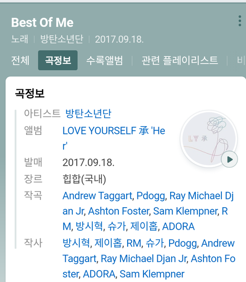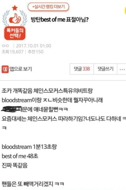 방탄 best of me 가 나왔을 당시 판에 올라온 글