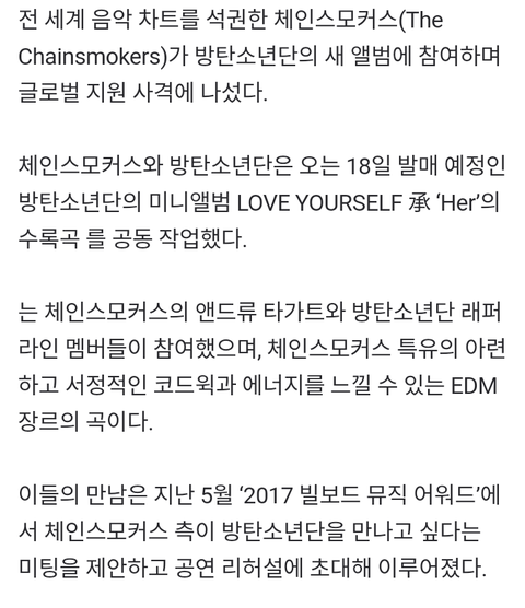 (체인스모커스와 협업해서 만든 곡)