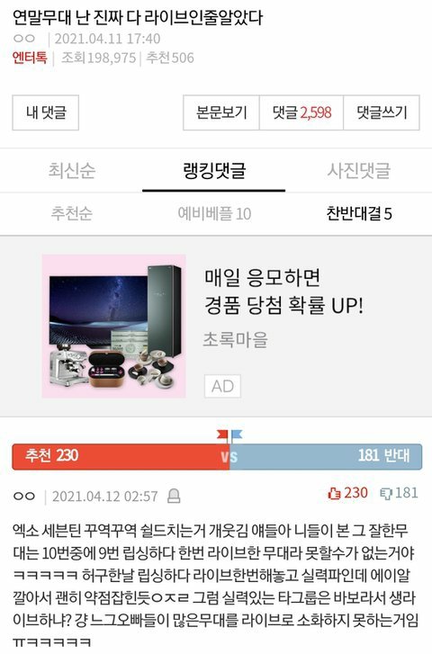라이브 에이알 ㅇㅈㄹ 도대체 타돌한테 그딴 프레임 씌우면 느그 가수 실력이 올라가는것도 아니고 ㅋㅋㅋ