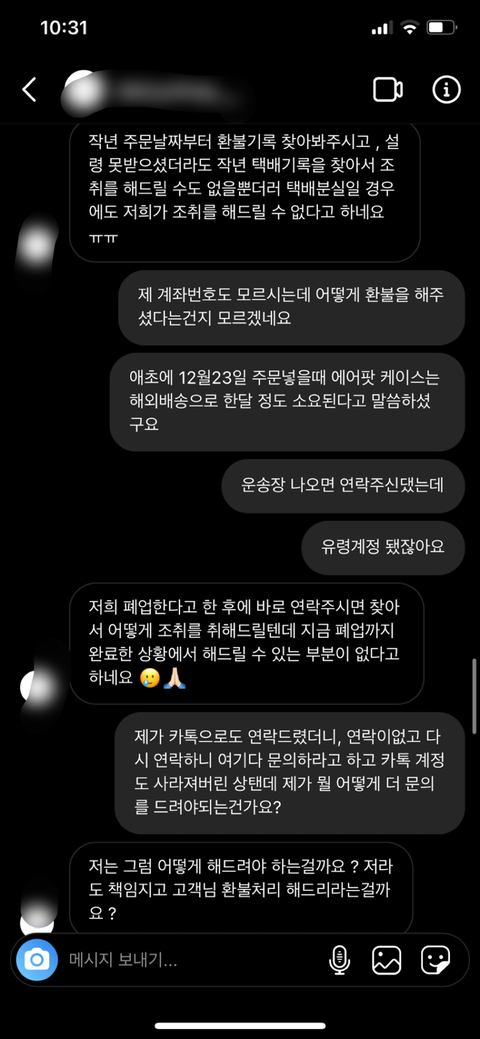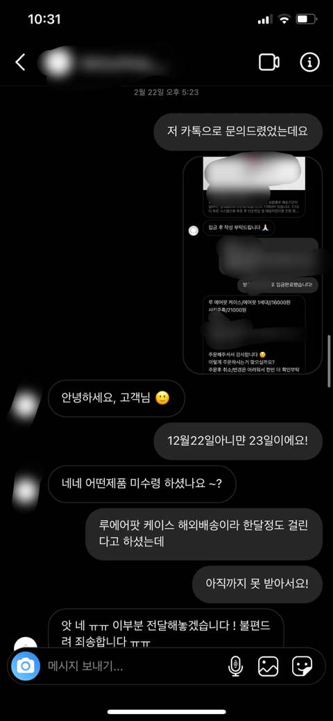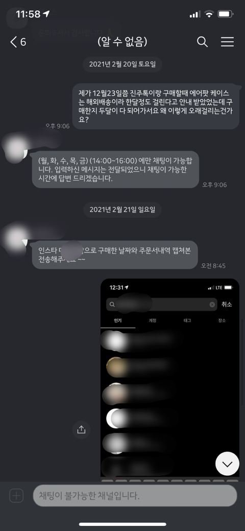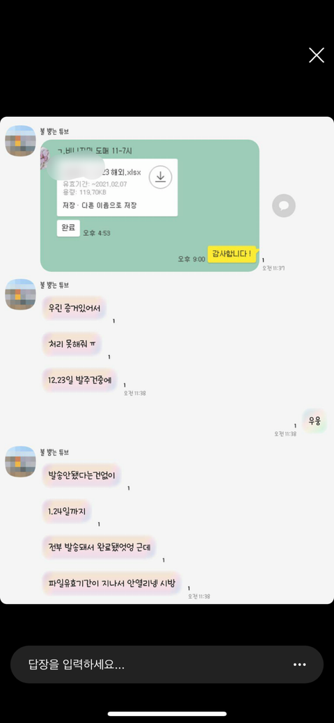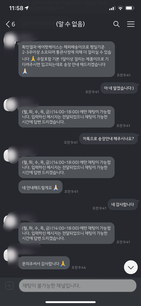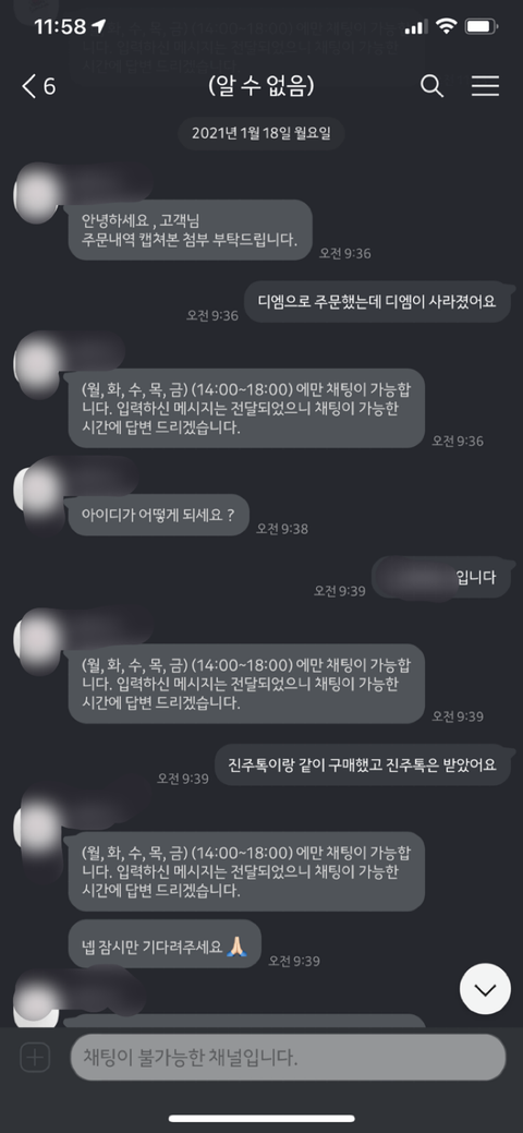 그리고 주문넣을 시점에 자기네들이 곧 폐업하니까 카톡으로 궁금한 점 있으면 문의달라