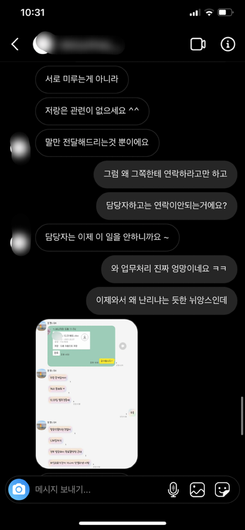 이 사람하고는 더이상 뭐라 말해도 저런식으로 받아치겠다 싶어서 저러고 지금은 아무것도 안보낸상황