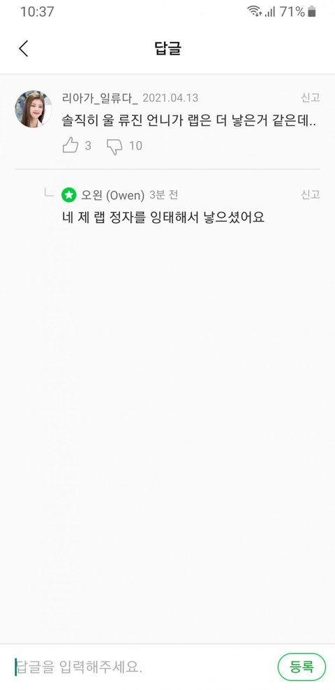 남자남자 엮는 알페스 하지마라고 호소할 땐 언제고 류진 랩이 자기 정자 잉태해서 나온 거라고 하는 내로남불 그성별