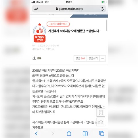 서예지를 옹호하는 스태프에게 물어보고 싶다. 당신의 행동의 이유는 당신이 말하는 서예지를 아에 대한 당신의 존경입니까, 아니면 그녀로부터 선물을받을지도 모른다는 사실입니까? 2015 년부터 2020 년까지 서예지와 함께 일한다고 하셨는데. 2018 년 중반에 예지가 선물로 여행을하신 분이셨어요? 아시다시피, 서예지는 절대 사회 기부를하지 않습니다. 그래서 그녀가 당신에게 그렇게 방탕 한 이유? 당신 그녀의 행동에 대해 알고 조용히 있었습니까? 이전 게시물에서 나는 서예지가 어떻게 나를 괴롭 히고 그녀의 과거 소속사 킹 엔터 테이먼트의 사람들이 그녀의 불법 행위에 관여했는지를 밀었다. 알고 계 셨나요? 그래서 서예지를 정당화하려고하십니까?
