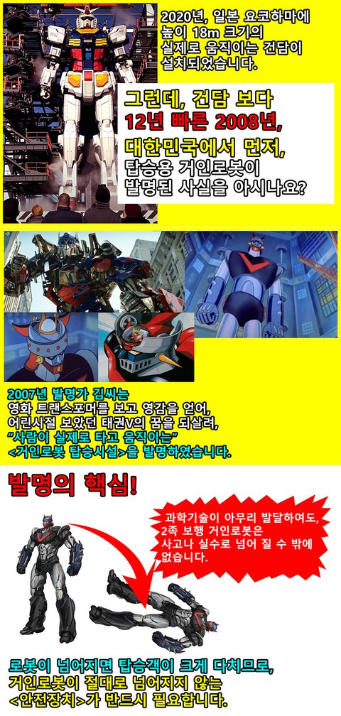 ㅁ 사건의 의의 : 일본의 실물크기 건담보다 먼저 발명했는데, 인천로봇랜드가 탐욕을 내어, 국내 발명자를 저버리는 바람에, 일본이 먼저 <거인로봇>을 만든 것임.