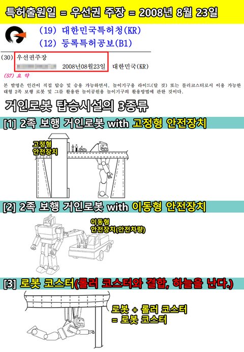 ㅇ 2008년 8월 : 놀이공원용 거인로봇 탑승시설 발명 및 특허 출원(2012년 특허등록)
