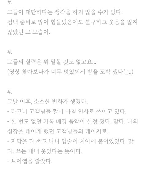 이제 6년차인데도 초심 잃지않고 함께 일하신 스탭 분들의 후기가 꾸준히 들려오는게 팬으로서 너무 신기하고 고마워