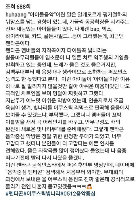 이외에도 아이돌리그 작가님께서 올려주신 작년 펜타곤 후기!!