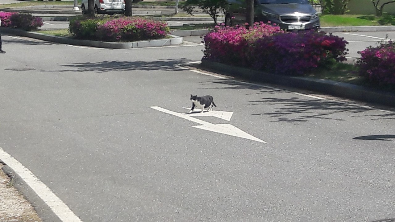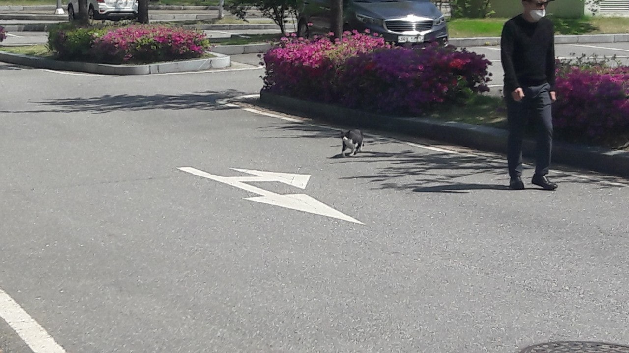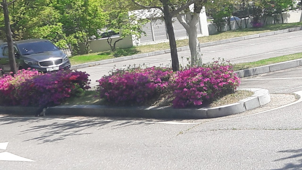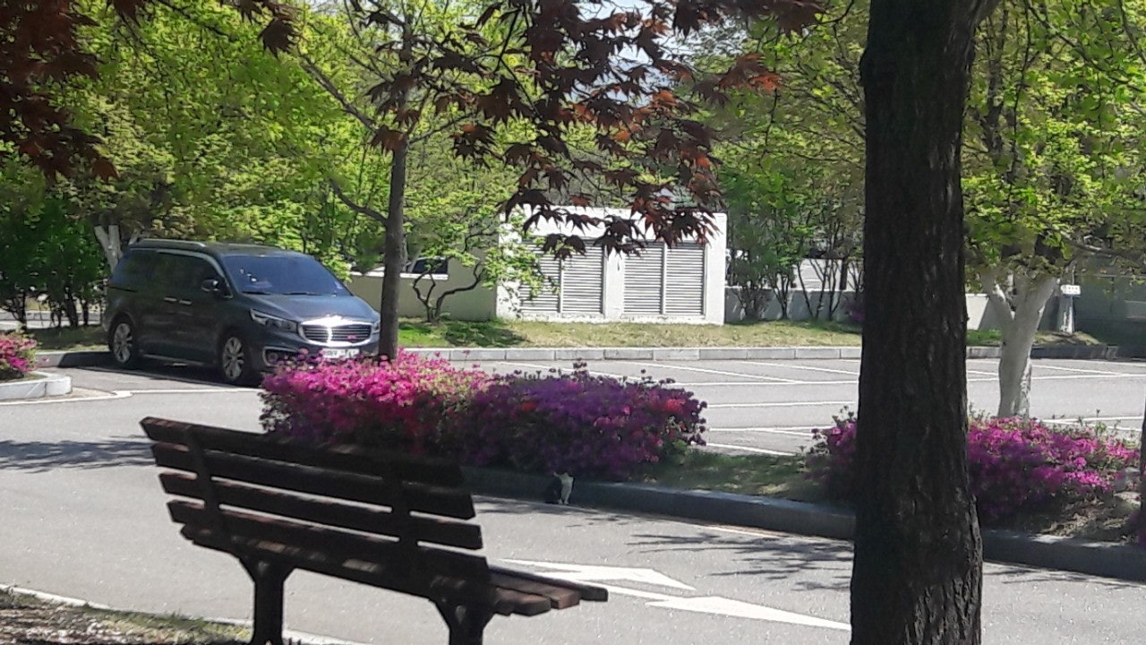 새끼밴 검은고양이 네로와 분홍 철쭉