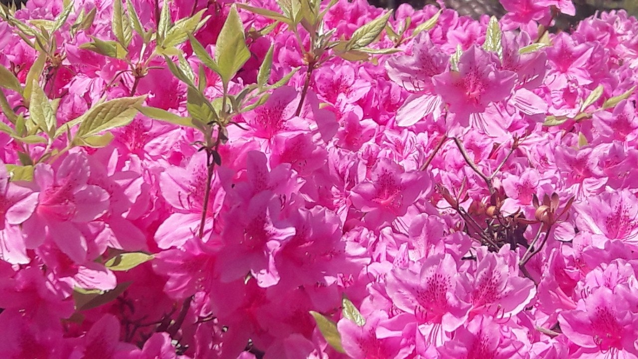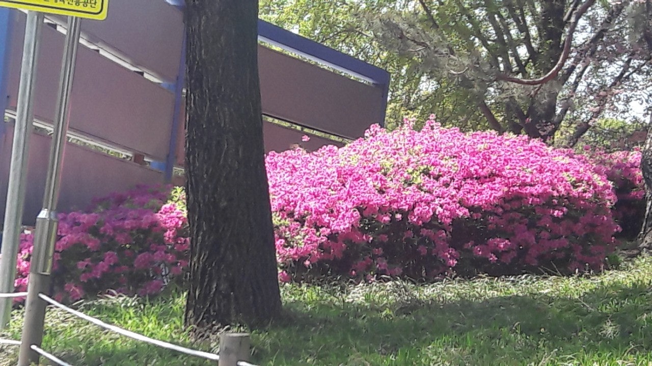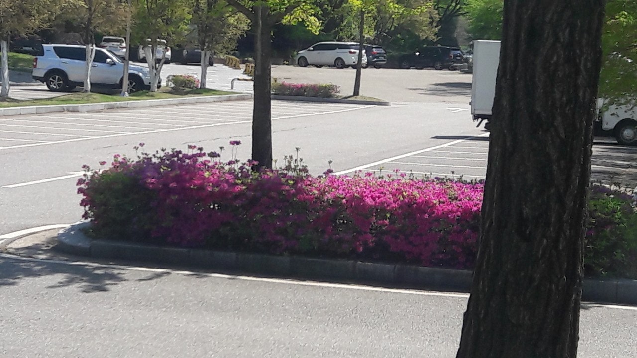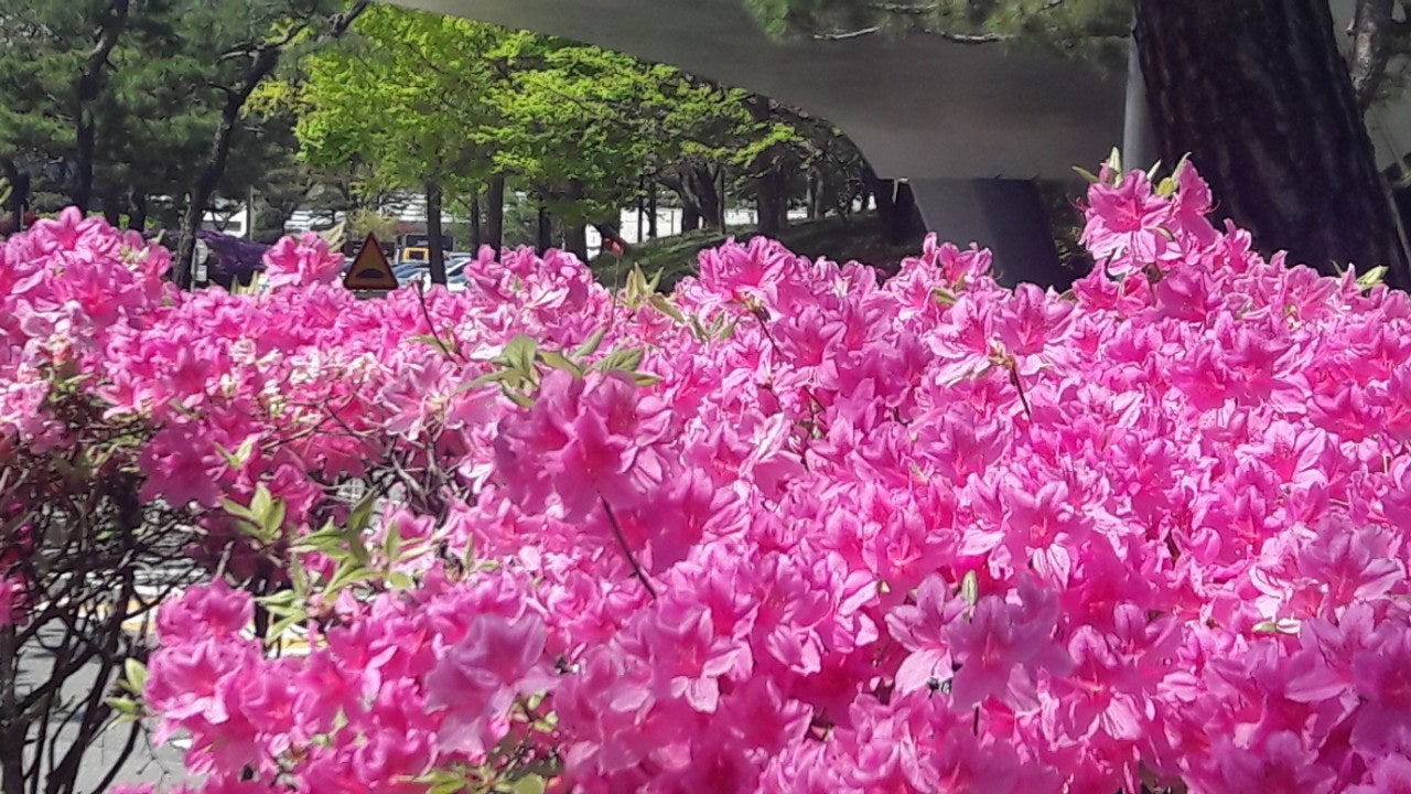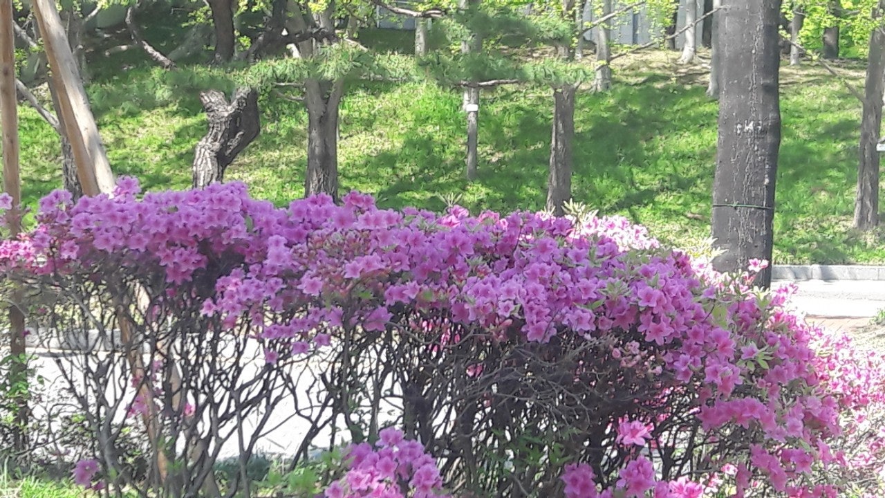 새끼밴 검은고양이 네로와 분홍 철쭉